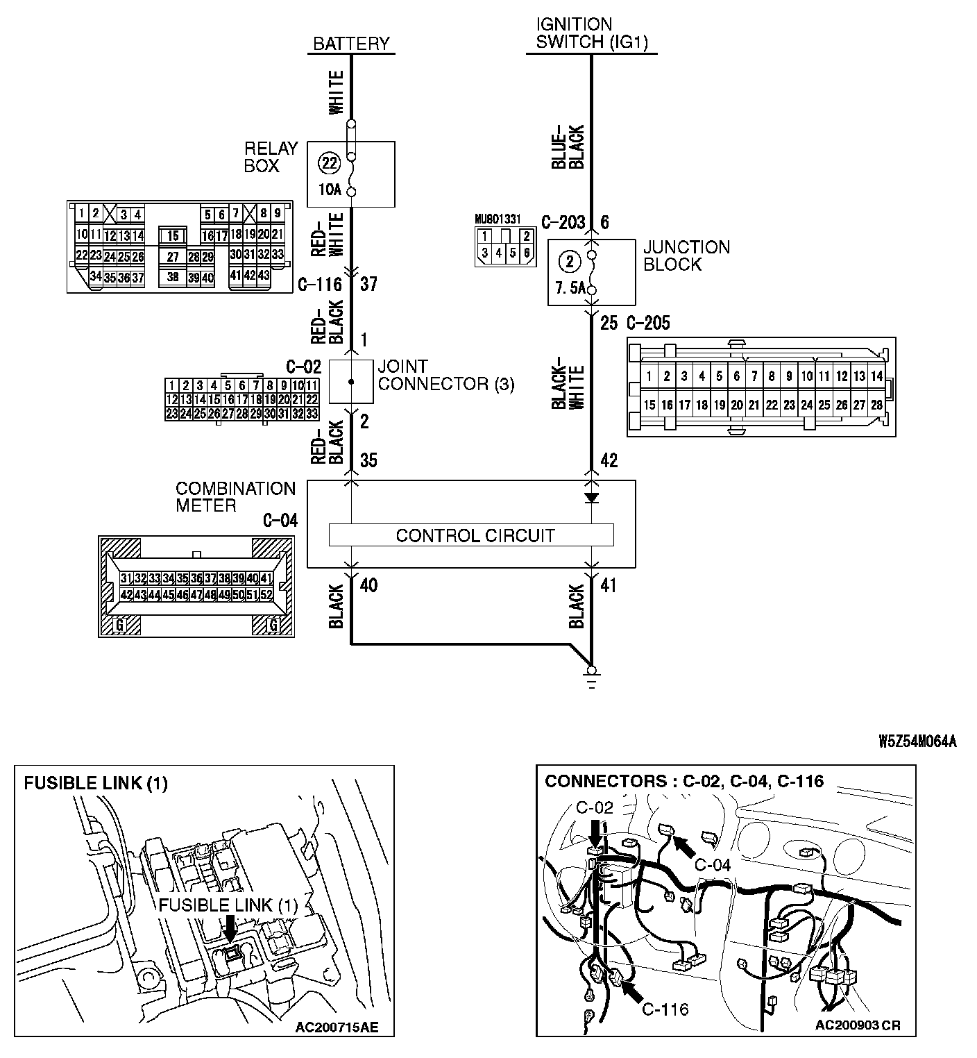 STEP 6. Check the wiring harness between combination meter connector C-04 (terminal 42) and ignition switch (IG1).