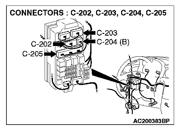 NOTE: Also check junction block connectors C-203 and C-205. If junction block connectors C-203 or C-205 are damaged, repair or replace the connector as described in Harness Connector Inspection.