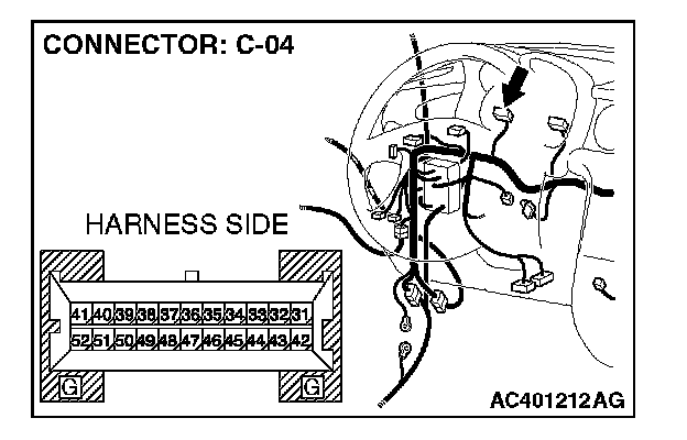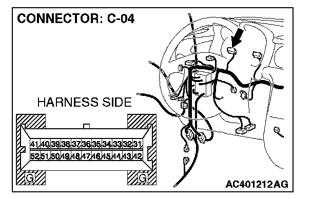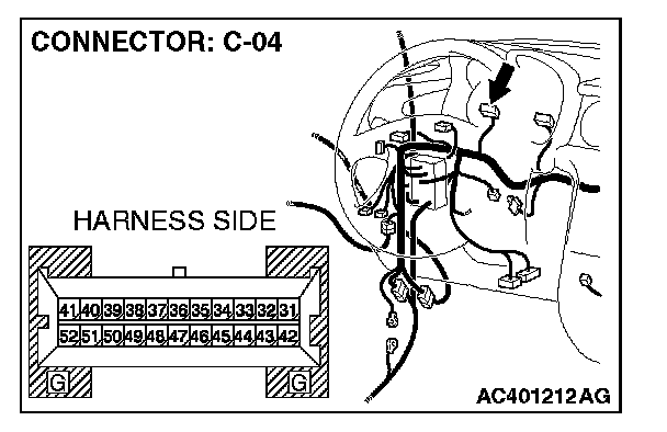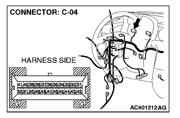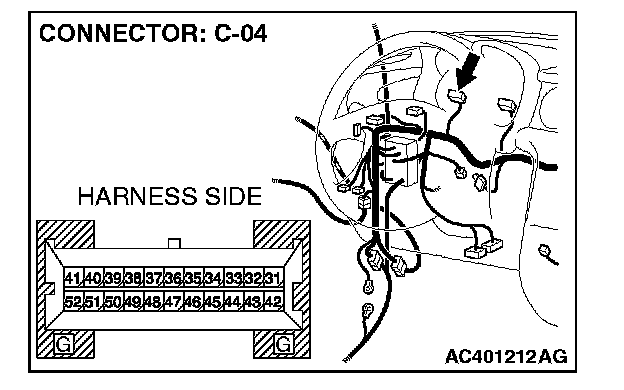STEP 7. Measure at combination meter connector C-04 by backprobing in order to check the ground circuit to the combination meter.