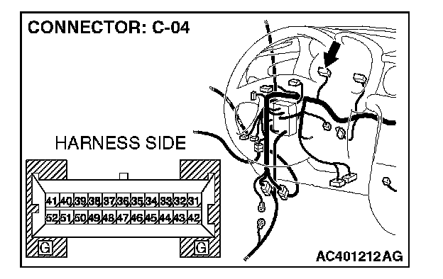 STEP 9. Check the wiring harness between combination meter connector C-04 (terminal 40 and 41) and ground.