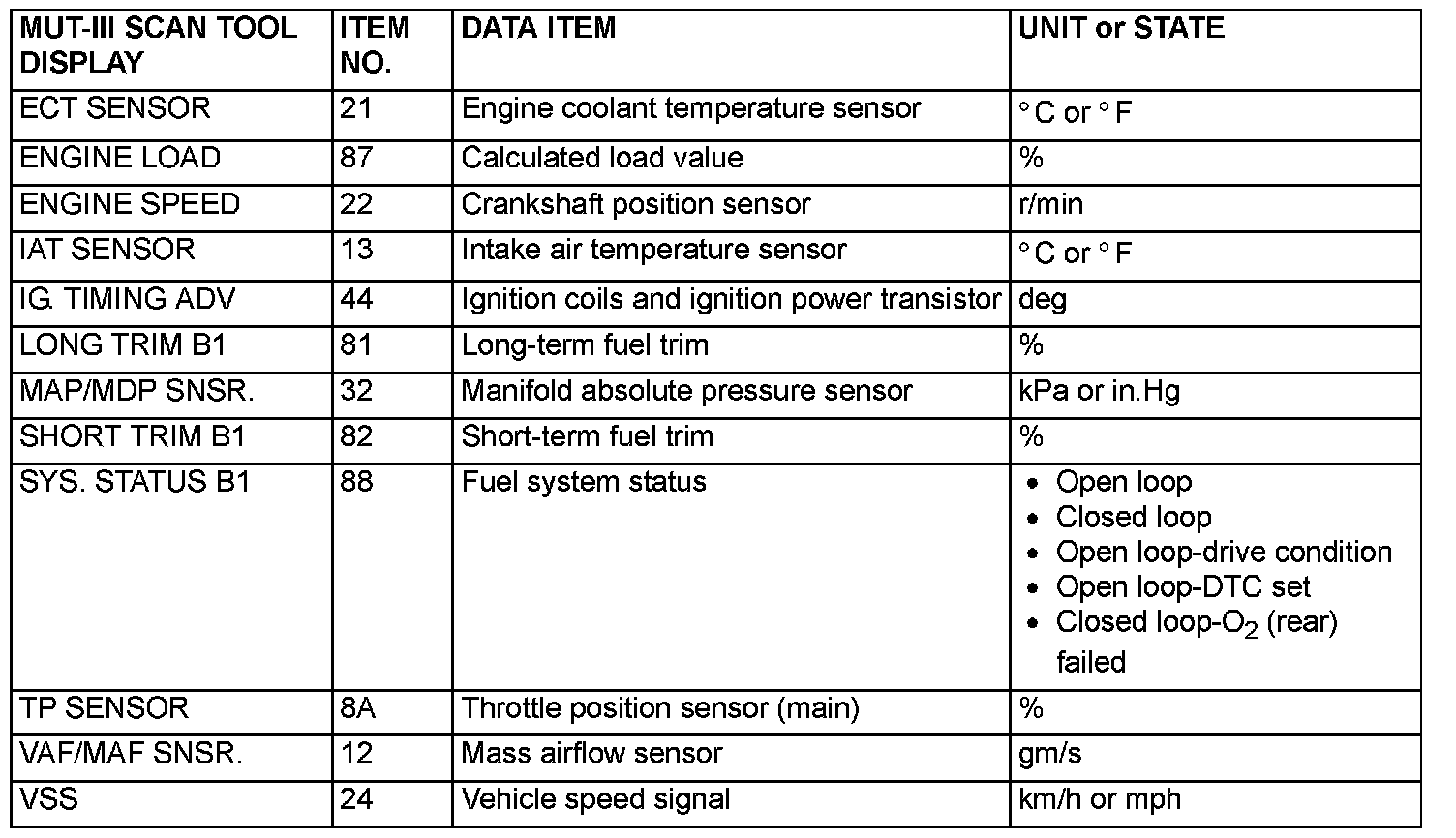 NOTE: As for diagnostic trouble code P1603, "Freeze frame" data is not memorized.