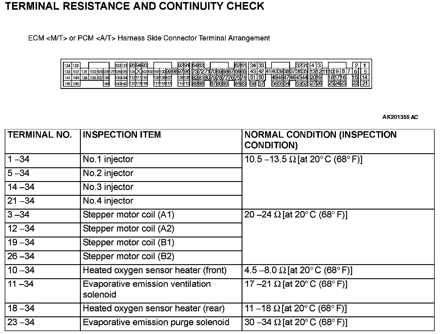 ECM <M/T> Or PCM <A/T> Harness Side Connector Terminal Arrangement Part 1: