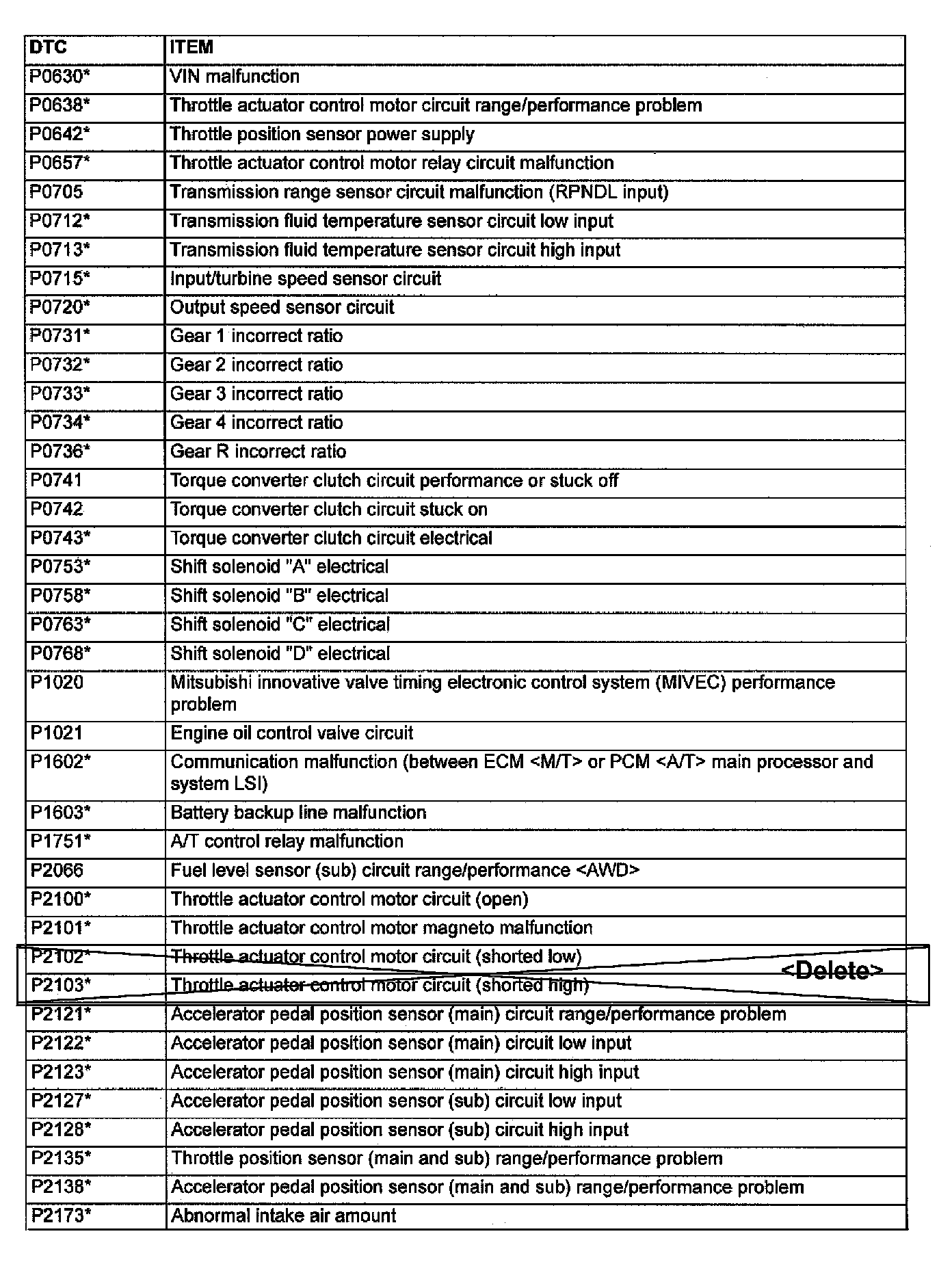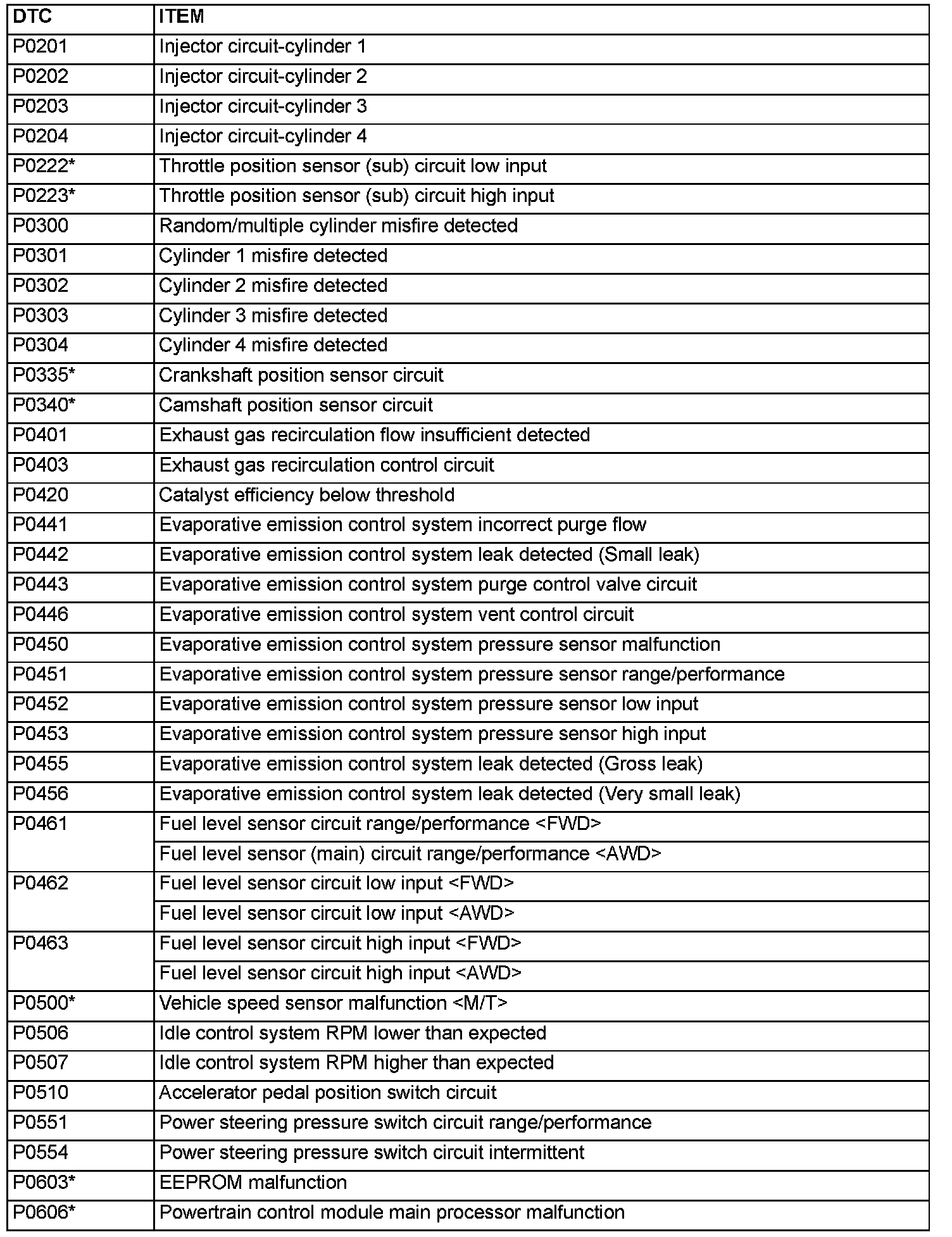 P0201 - P0606: