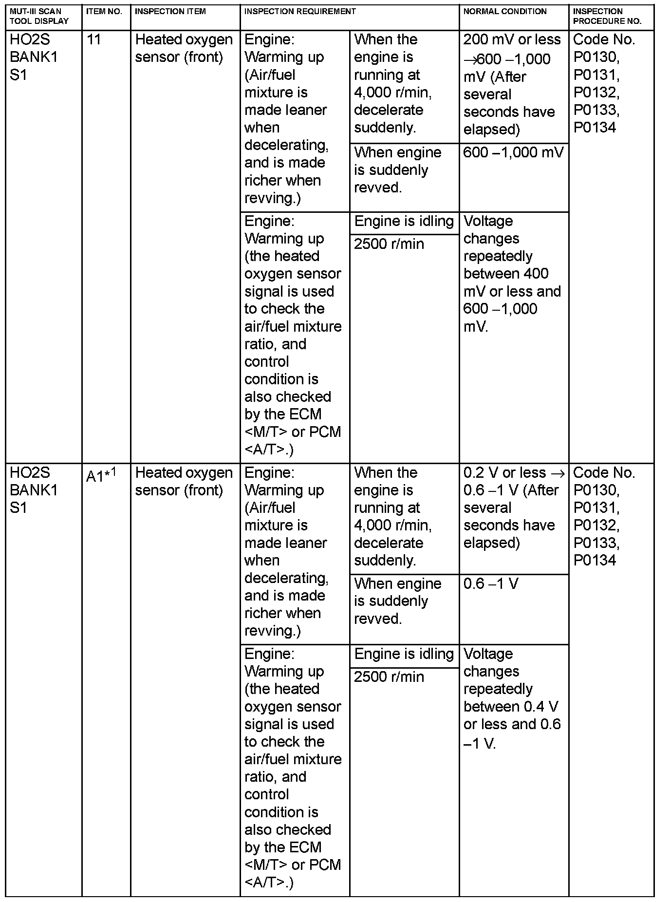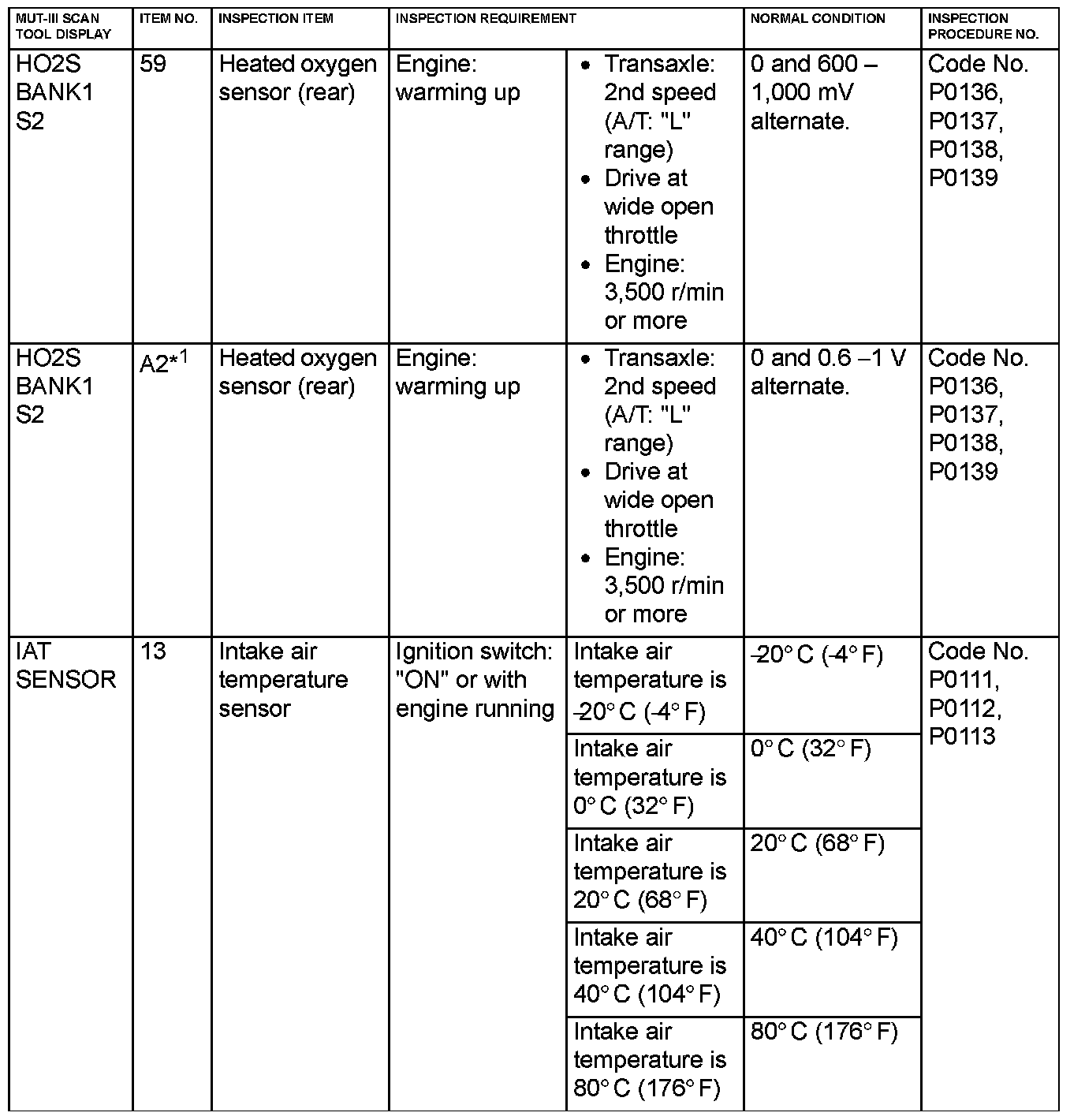 NOTE: Sensor 1 indicates the sensor mounted at a position closest to the engine, and sensor 2 indicates the sensor mounted at the position second close to the engine.