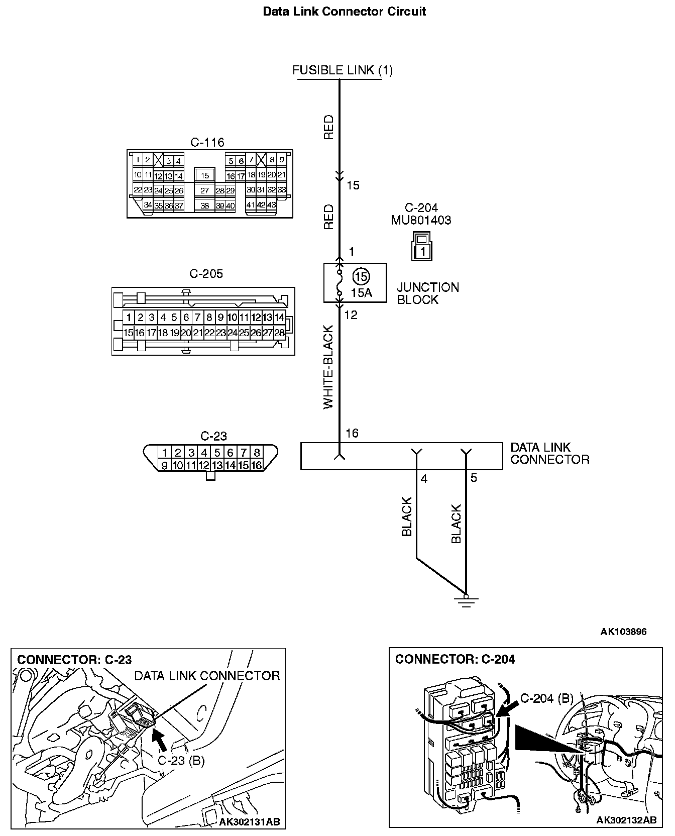 STEP 2. Check the continuity at data link connector C-23.
