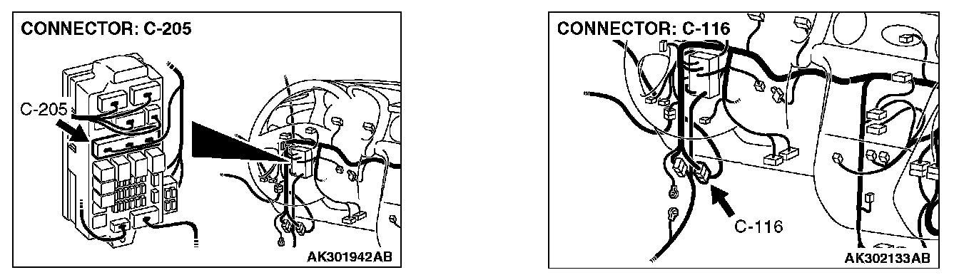 NO: Check harness connectors C-116, C-204 and C-205 at intermediate connector for damage, and repair or replace as required. If intermediate connectors are in good condition, repair harness wire between fusible link 1. and data link connector C-23 (terminal No. 16) because of open circuit. Then confirm that the malfunction symptom is eliminated.