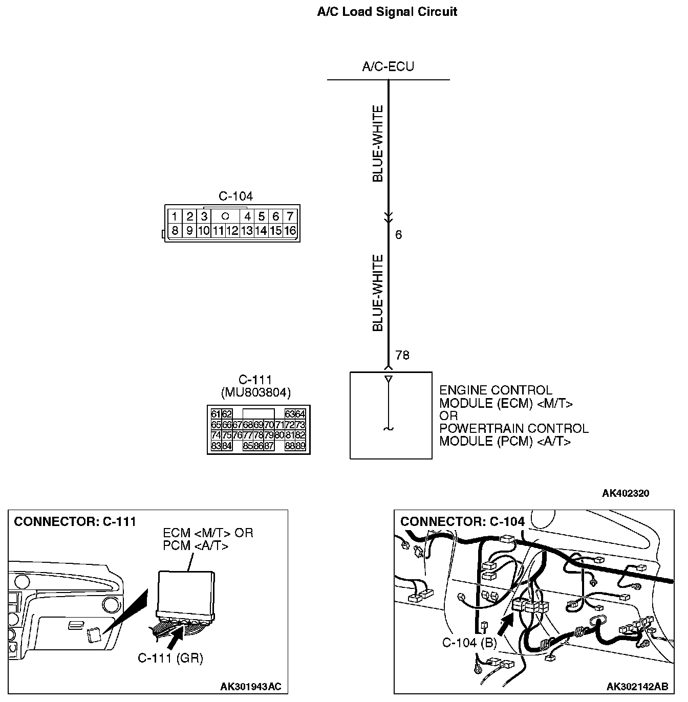 INSPECTION PROCEDURE 27: Improper Idle Speed When the A/C is Operating (A/C load signal)A/C Load Signal Circuit: