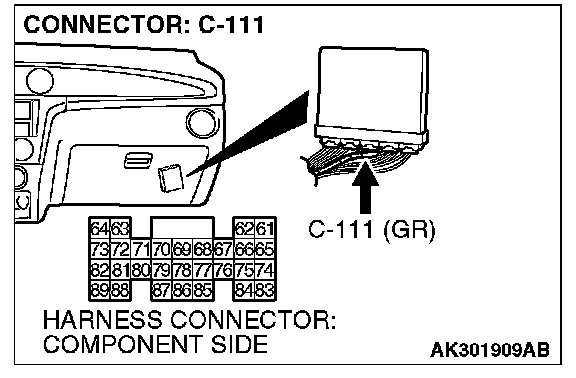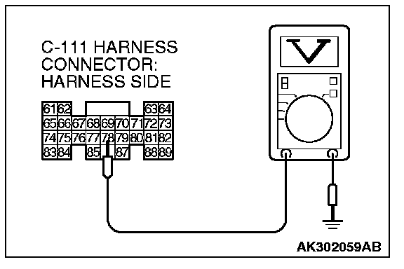 1. Do not disconnect the connector C-111 and measure at the harness side.