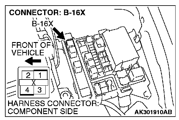 1. Disconnect the connector B-16X and measure at the harness side.