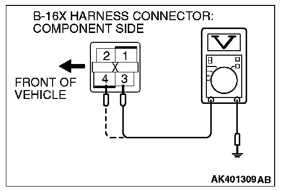 STEP 3. Measure the power supply voltage at MFI relay harness side connector B-16X.