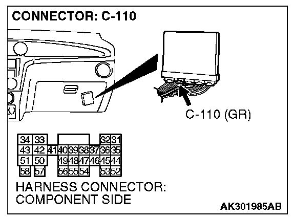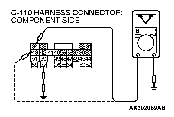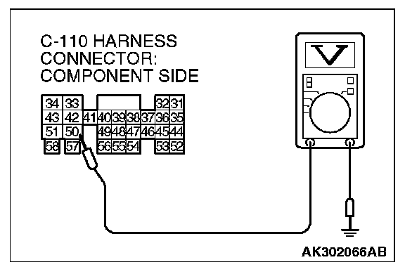 1. Disconnect the connector C-110 and measure at the harness side.