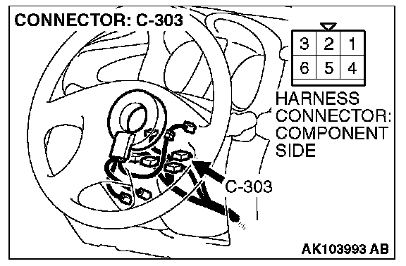NOTE: Check harness after checking intermediate connectors A-14, C-116, C-203, C-205 and C-303. If intermediate connectors are damaged, repair or replace them. Then confirm that the malfunction symptom is eliminated.