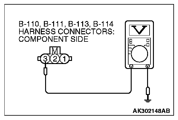 STEP 3. Measure the power supply voltage at ignition coil connectors B-110, B-111, B-113 and B-114.