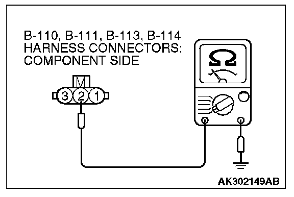 1. Disconnect the connectors B-110, B-111, B-113 and B-114 and measure at the harness side.