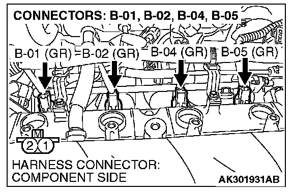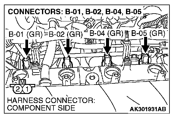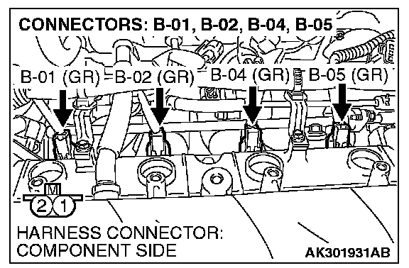1. Disconnect the injector connector B-01, B-02, B-04, B-05.