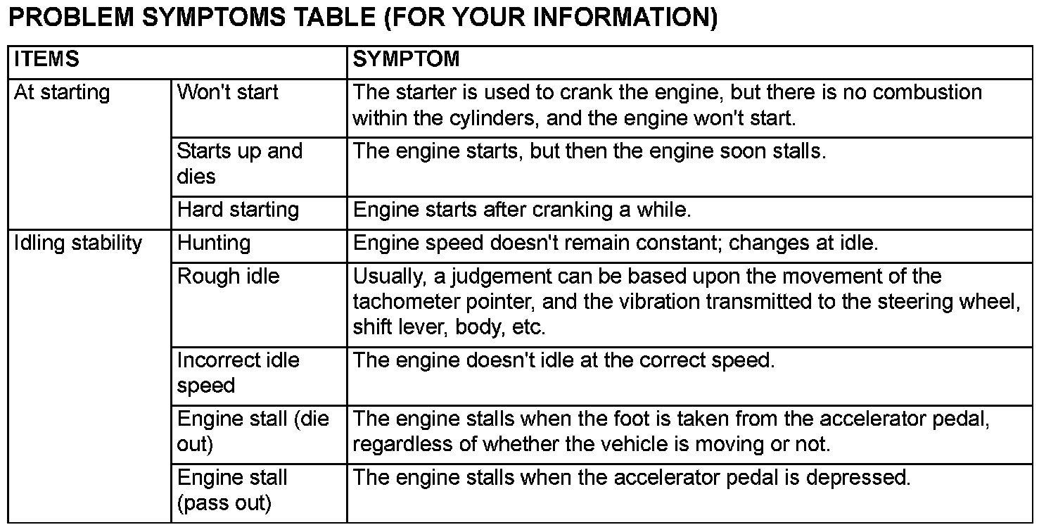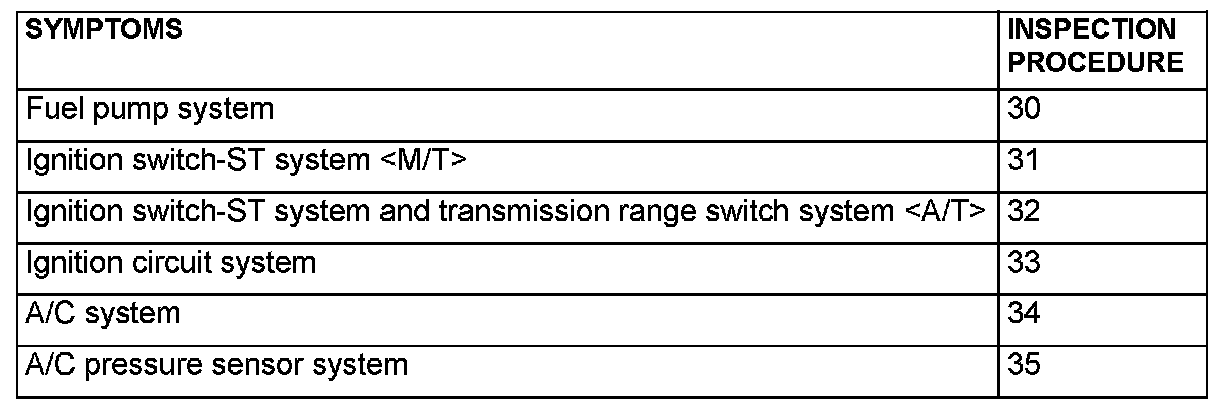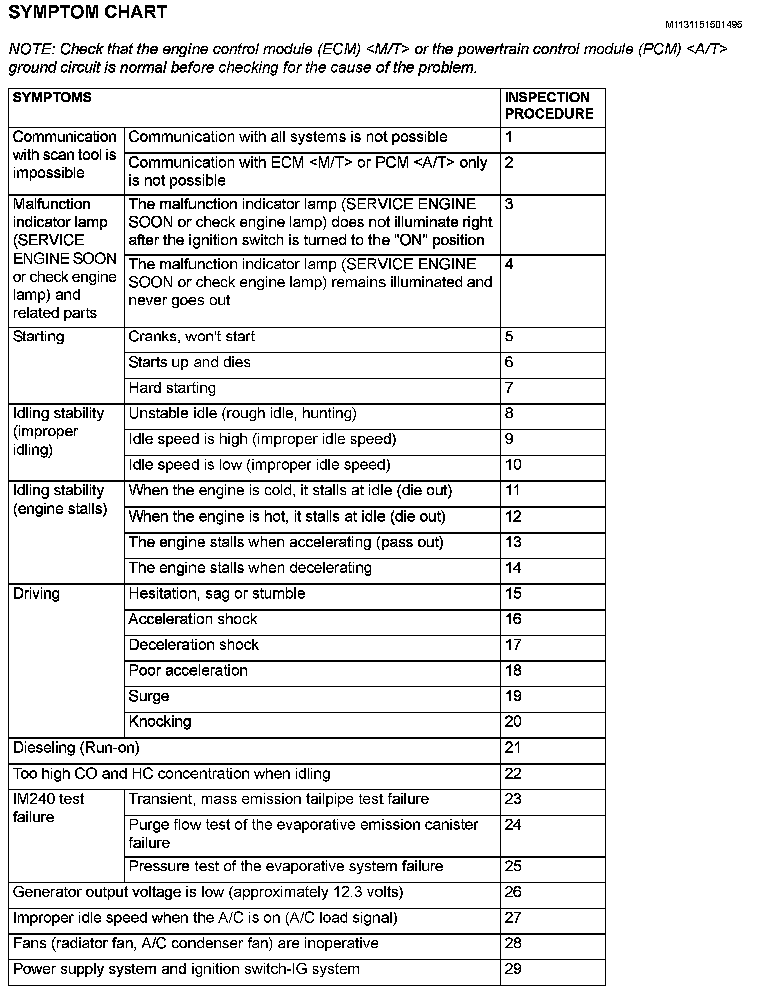 Inspection Chart For Trouble Symptoms Part 1: