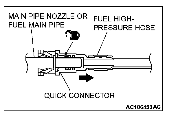 CAUTION: Connect the fuel high-pressure hose, and then pull it gently in the direction of removal to check that the hose is firmly connected.