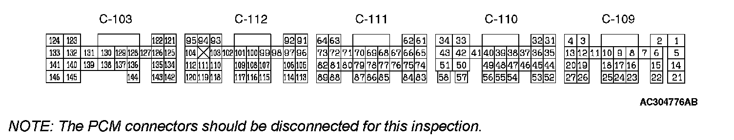 PCM TERMINAL RESISTANCE AND CONTINUITY INSPECTION CHART: