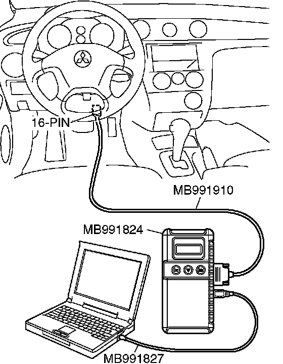 CAUTION: To prevent damage to scan tool MB991958, always turn the ignition switch to the LOCK (OFF) position before connecting or disconnecting scan tool MB991958.