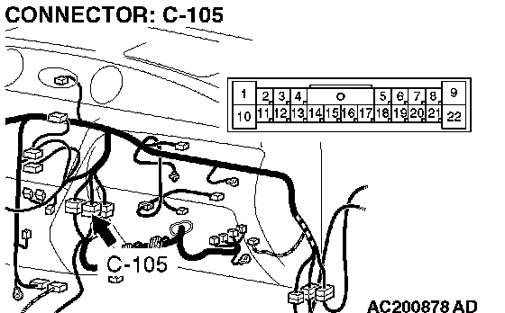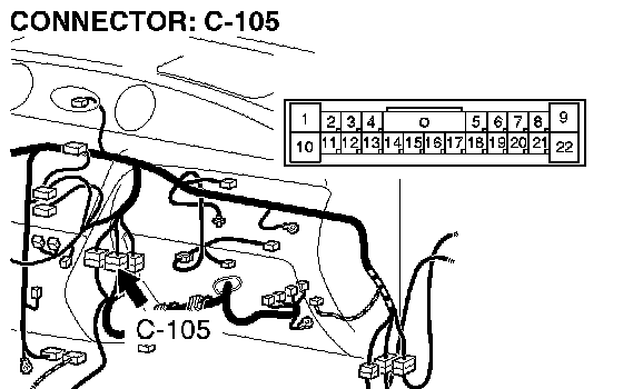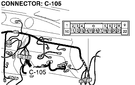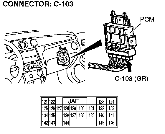 STEP 4. Check combination meter connector C-04, intermediate connector C-105 and PCM connector C-103 for loose, corroded or damaged terminals, or terminals pushed back in the connector.