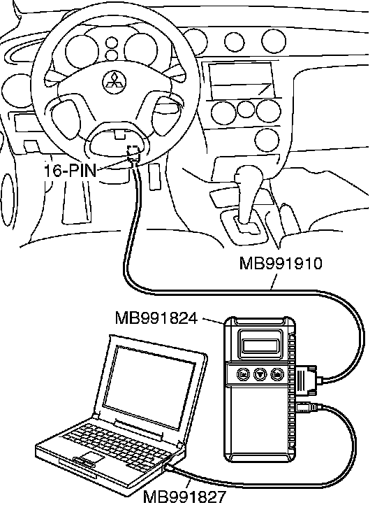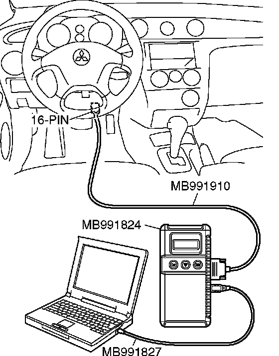 CAUTION: To prevent damage to scan tool MB991958, always turn the ignition switch to the LOCK (OFF) position before connecting or disconnecting scan tool MB991958,