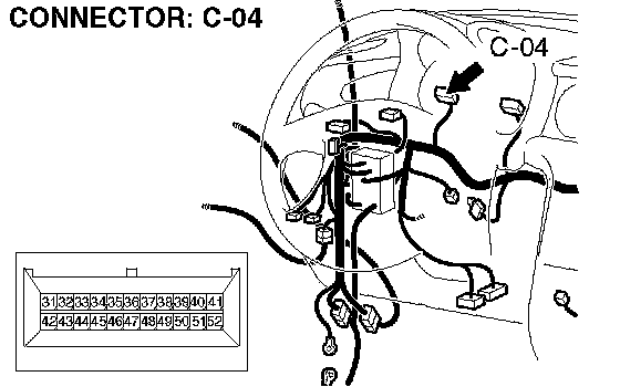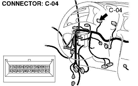STEP 12. Check combination meter connector C-04 for loose, corroded or damaged terminals, or terminals pushed back in the connector.