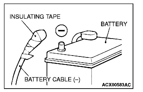 - After disconnecting the battery cable, wait 60 seconds or more before proceeding with the following work. The SRS system is designed to retain enough voltage to deploy the air bag for a short time even after the battery has been disconnected, so serious injury may result from unintended air bag deployment if work is done on the SRS system immediately after the battery cables are disconnected.
