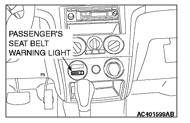 1. Check that the passenger seat belt warning light illuminates when the ignition switch is in the "ON" position.