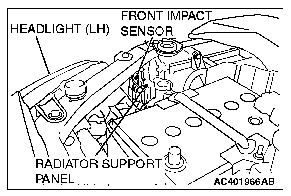 3. Check the front impact sensor wiring harness for binding, check the connector for damage, and check the terminals for deformation.