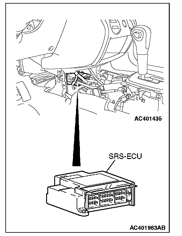 NOTE: If the battery power supply has been disconnected or disrupted by the collision, scan tool MB991958 cannot communicate with the SRS-ECU. Check the battery, then check and, if necessary, repair the front wiring harness and the instrument panel wiring harness before proceeding.