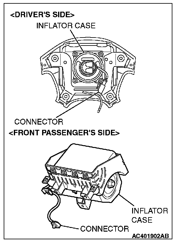 3. Check the air bag inflator case for dents, cracks or deformities.