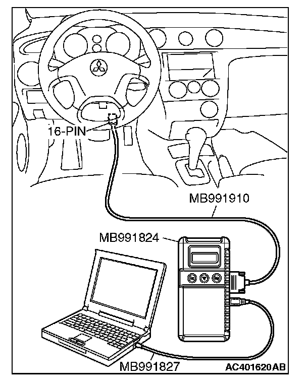 3. Connect special tool MB991827 to special tool MB991824 and the personal computer.