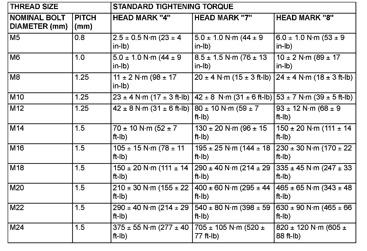 TIGHTENING TORQUEEach torque value in the table is a standard value for tightening under the following conditions.