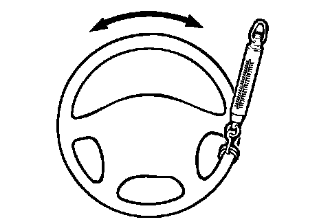 3. If the free play exceeds the limit value, set the steering wheel straight ahead with the engine stopped. Load approximately 5 N (1.1 pound) towards the steering circumference and check the play.