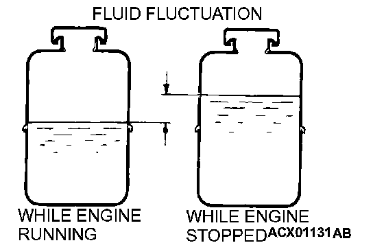 4. Check the fluid in the oil reservoir for foaming or milkiness. Check the difference of the fluid level when the engine is stopped, and while it is running. If the change of the fluid level is 5 mm (0.2 inch) or more, bleed the air from the system.