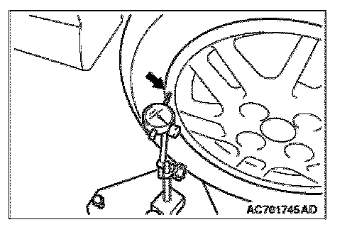 3. Set the dial guage on the wheel rim at a position horizontally across the center line of the wheel, as shown in the figure.