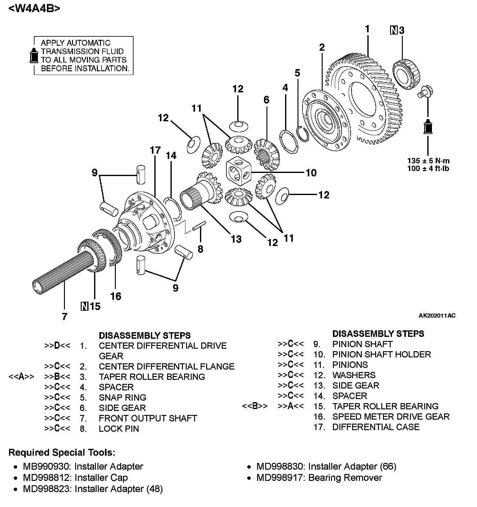 Disassembly Steps 1-17 <W4A4B> & Required Special Tools: