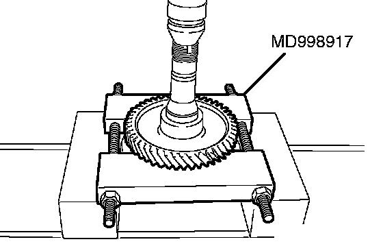 1. Support the transfer driven gear with general service tool or special tool MD998917, and then set them on the press.