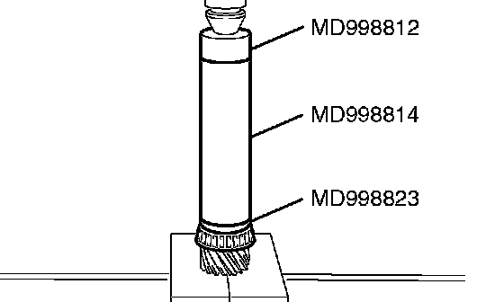 2. Using special tools MD998823, MD998812 and MD998814, press in the taper roller bearing.