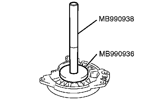 Use the special tools MB990936 and MB990938 to tap the outer race in the bearing retainer.
