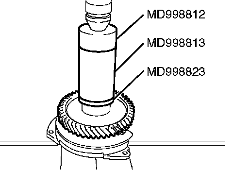2. Using special tools MD998823, MD998812 and MD998813, press in the transfer driven gear.