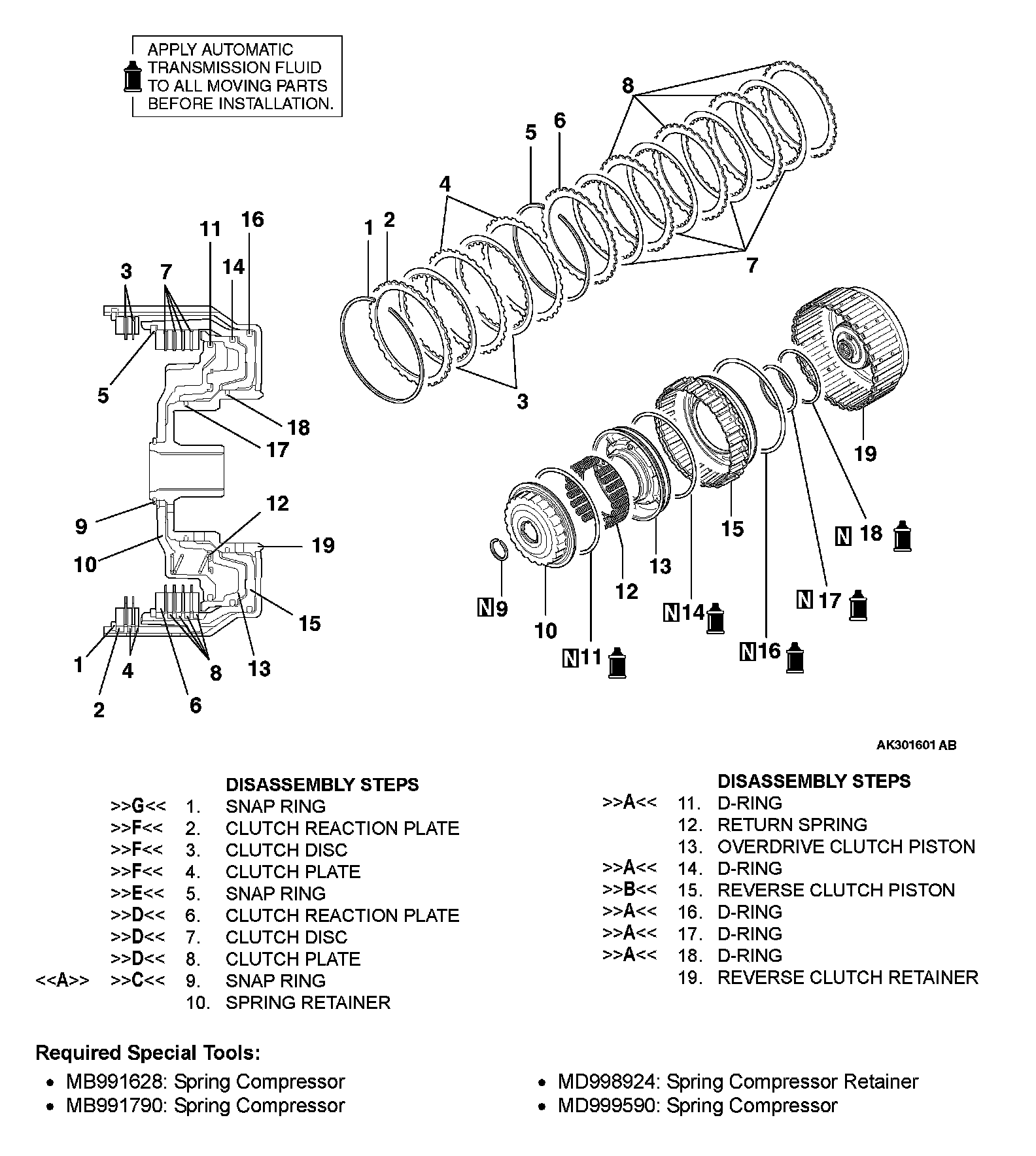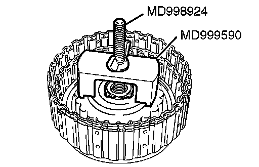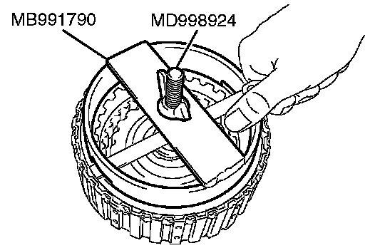 2. Set special tools MB991790 and MD998924 as shown in the illustration, and compress the clutch element.