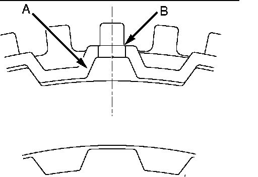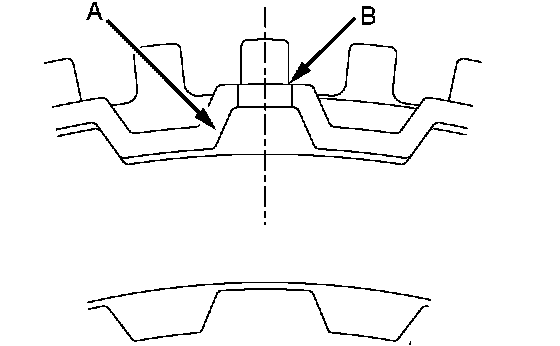 2. Install the clutch reaction plate in the direction shown. Install it the same as the clutch plate, so that the places with no teeth (marked A) are aligned with the holes in the retainer (marked B).