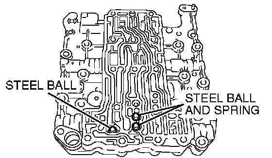 Install the steel balls (three pieces) and springs (two pieces) to the inside valve body as shown.