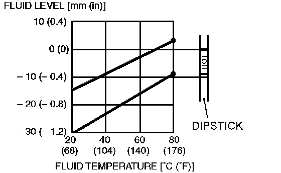 12. Drive the vehicle until the transmission fluid temperature rises to the normal operating temperature [70 - 80°C (158 - 176°F)], and then check the transmission fluid level again.