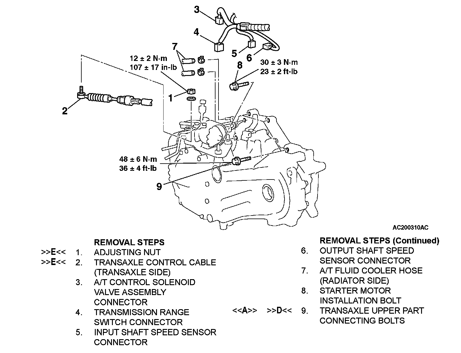 >>D<< TRANSAXLE UPPER PART CONNECTING BOLTS INSTALLATION
