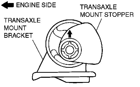 Install the transaxle mounting insulator stopper so that the arrow mark points as shown in the illustration.