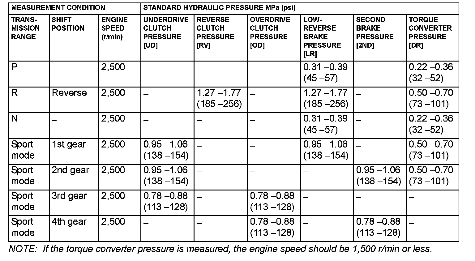 ^ Transmission fluid temperature: 70 - 80°C (158 - 176°F)