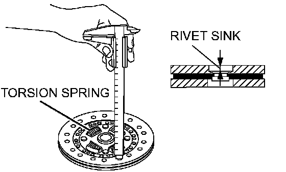 2. Measure the rivet sink. Replace the clutch disc if it is below the limit.