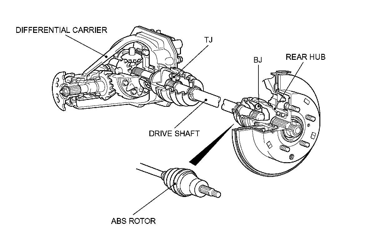 ^ ABS rotor for detecting the wheel speed is press-fitted to the BJ outer wheel.